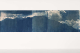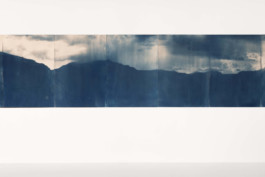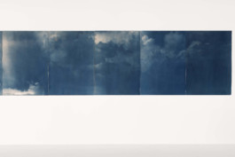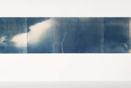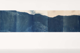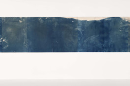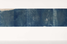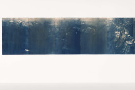 Hold on (2023), cyanotype on paper, bleached with French pine, 210 x 500 cm, 1/1 tpl’a
